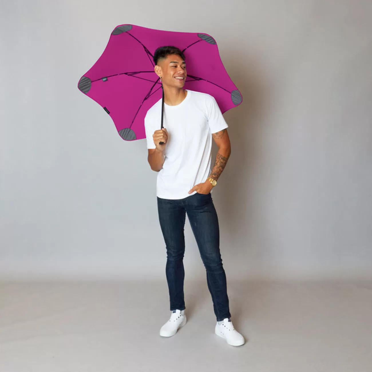 Our aerodynamic canopy will keep you protected, as BLUNT Umbrellas have been wind tunnel tested to a Category 1 Hurricane (71mph)*